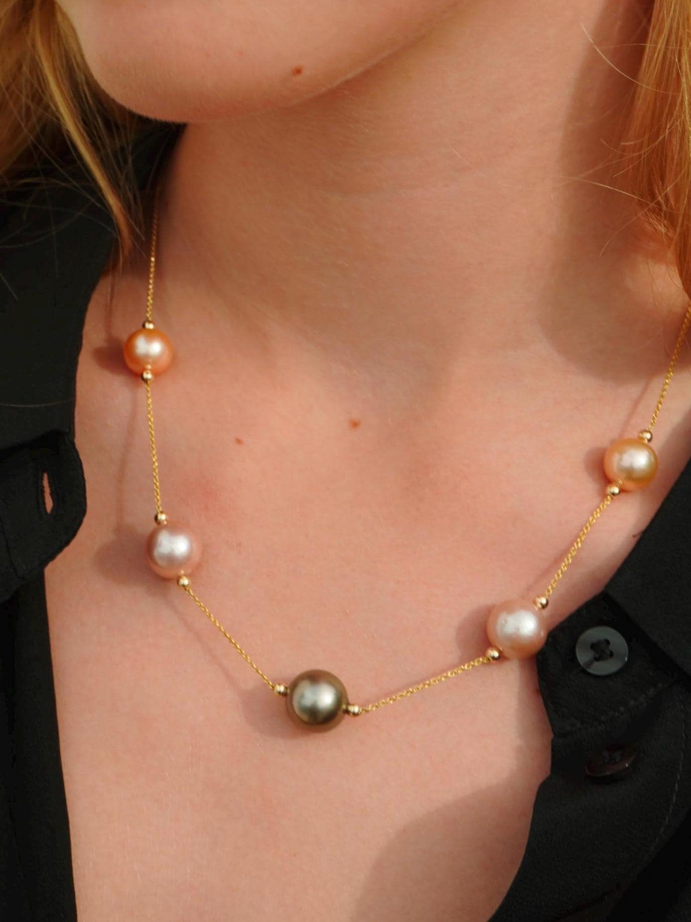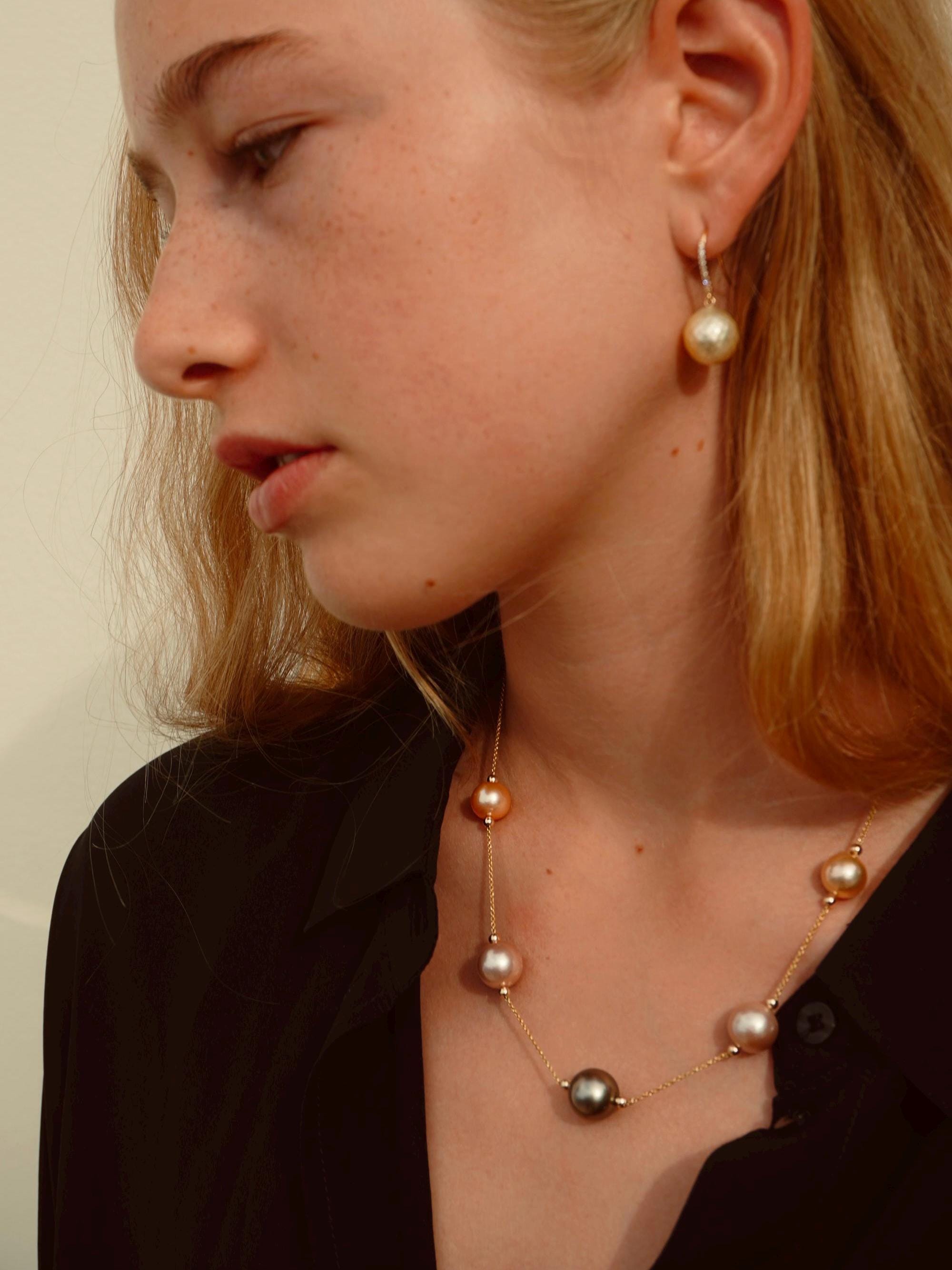 18k gold with a 11-12mm pearl. Available in rose and yellow gold with ming, freshwater or tahitian pearl.