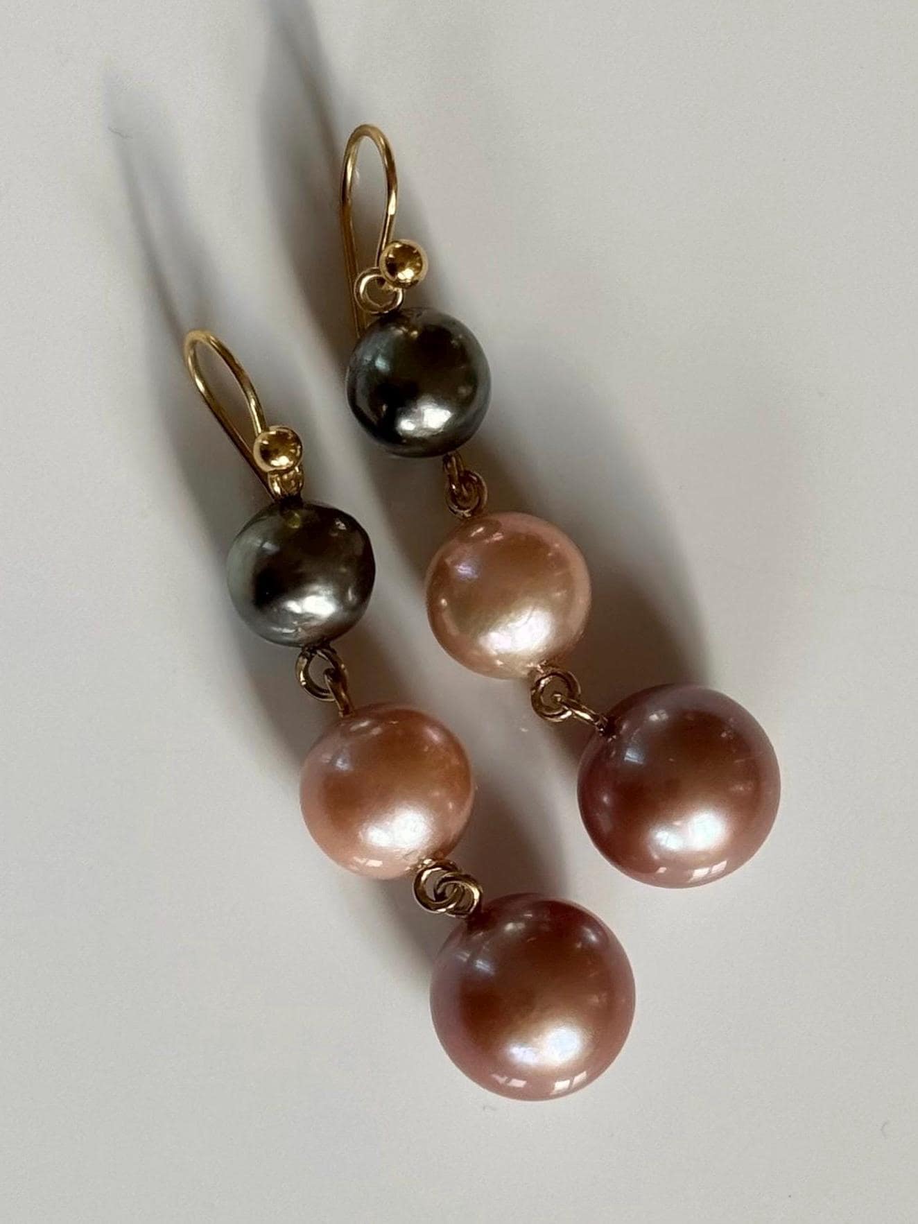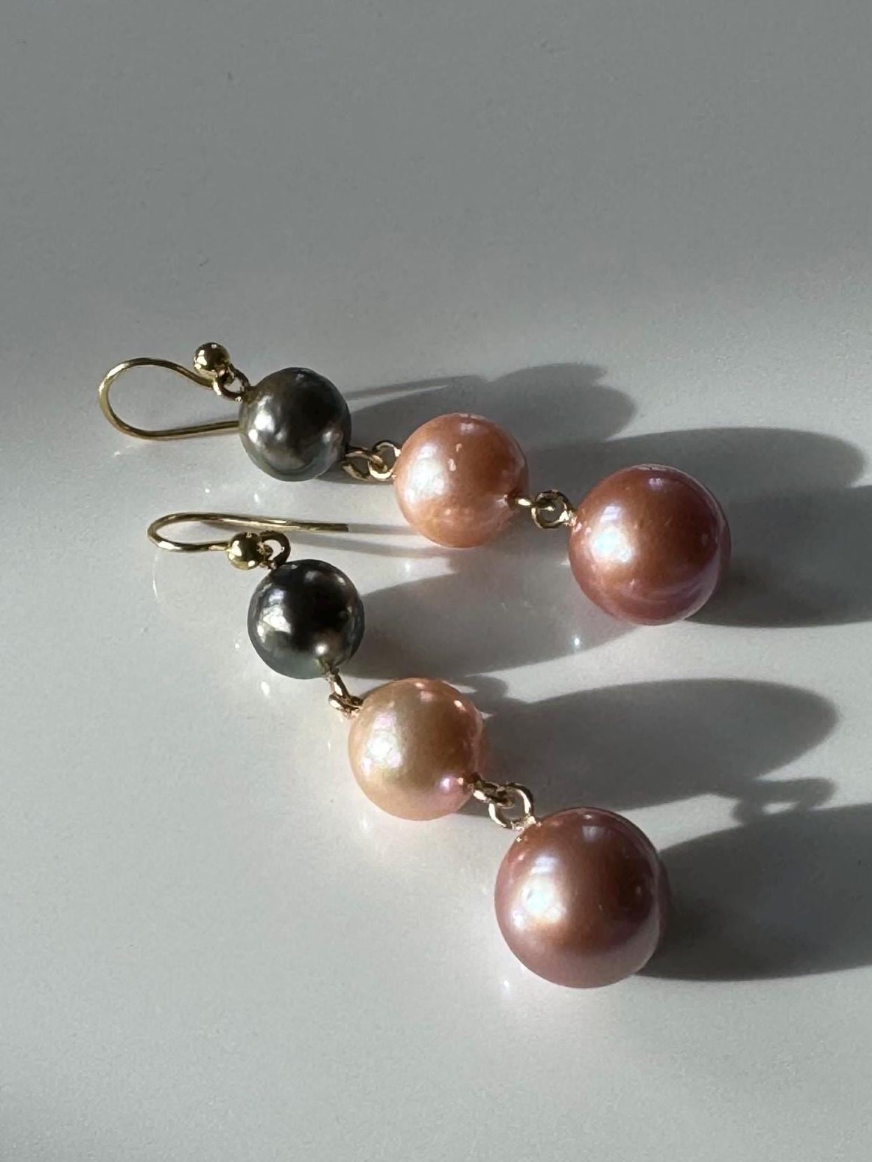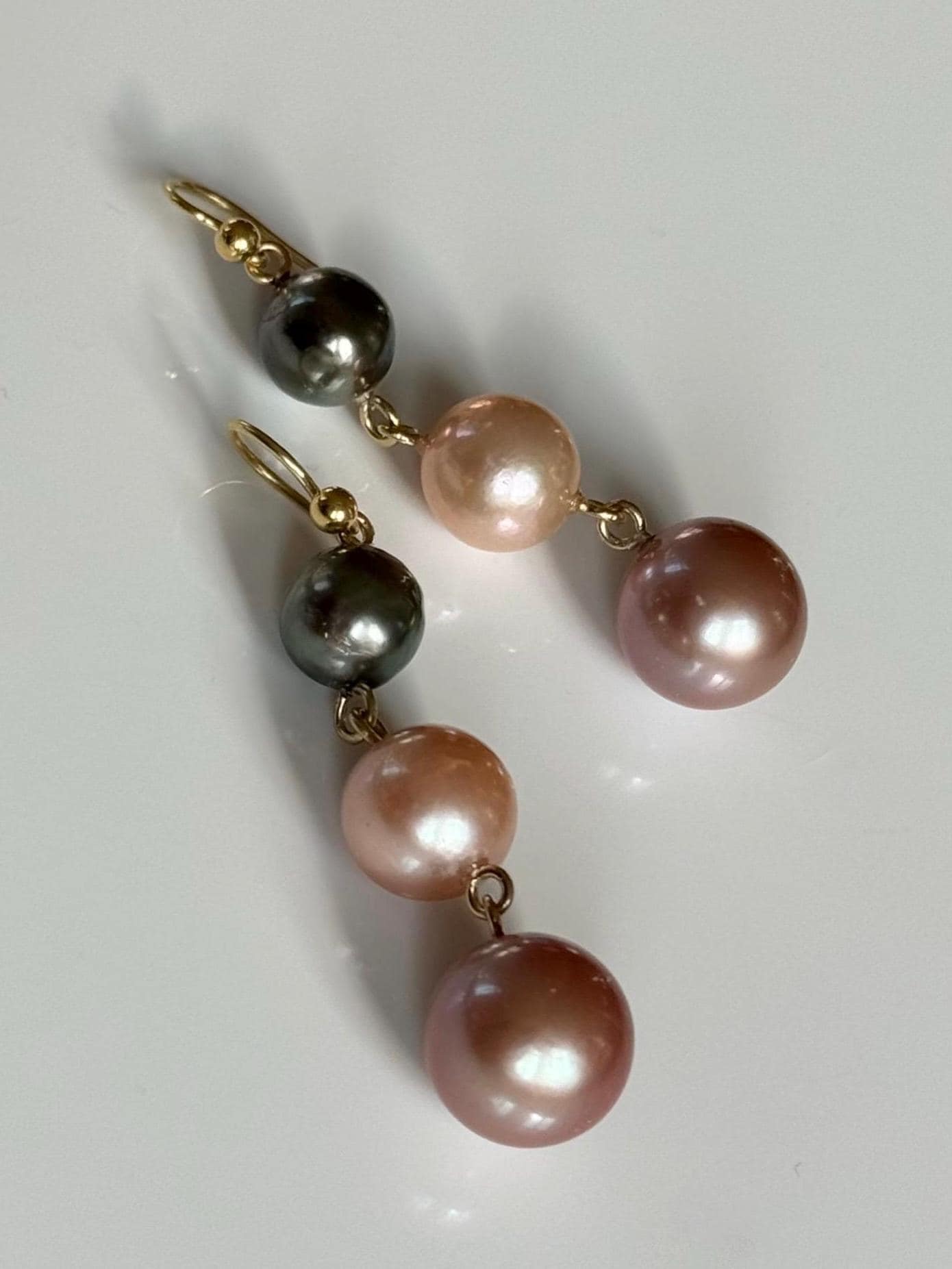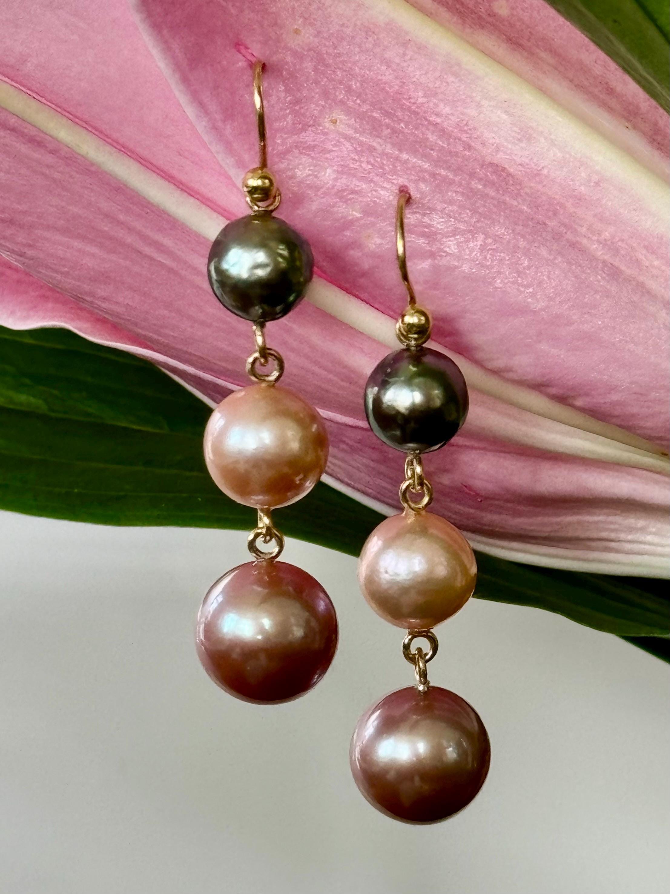 18k Gold with Pink Freshwater and Tahitian Pearls.