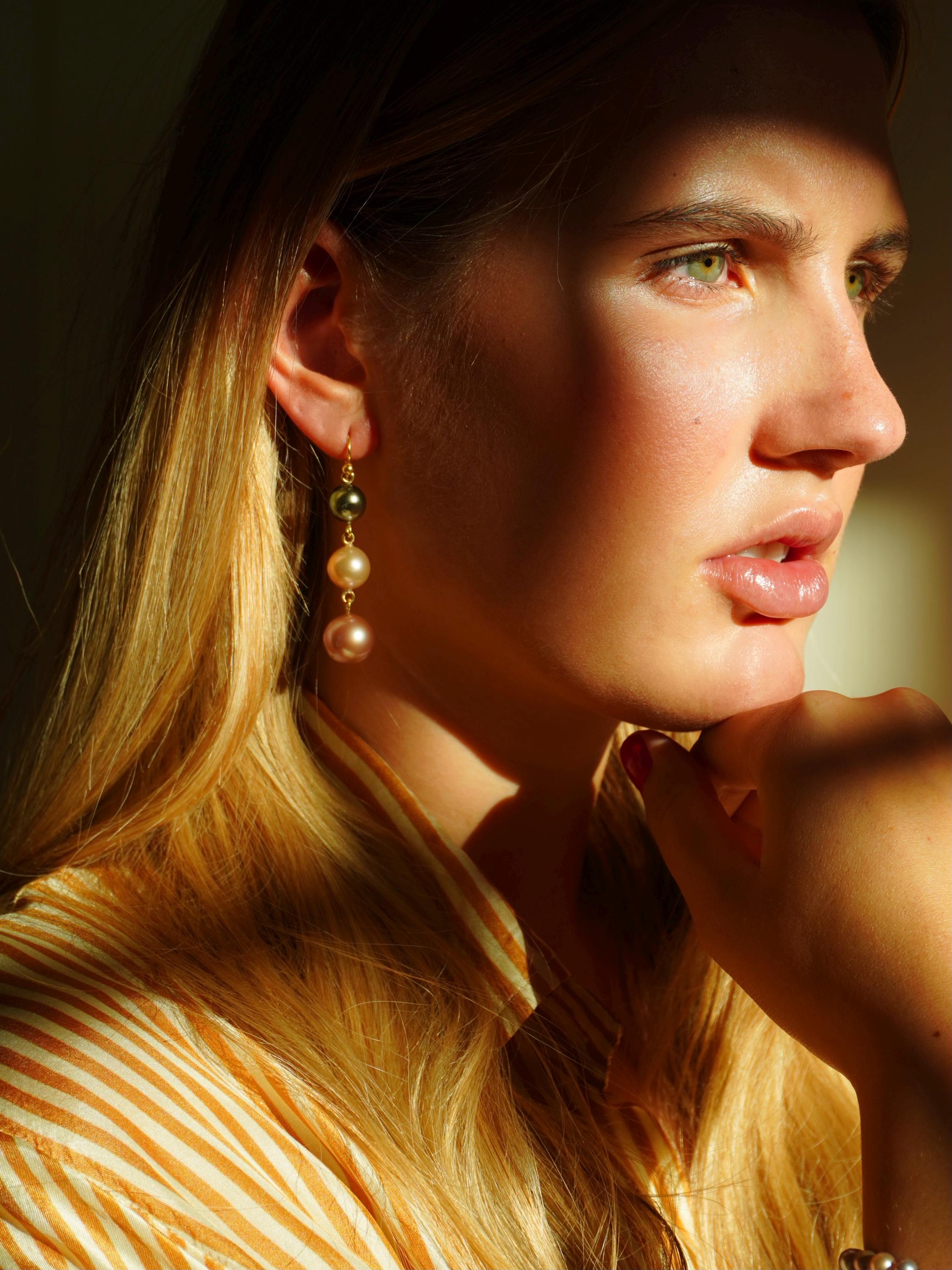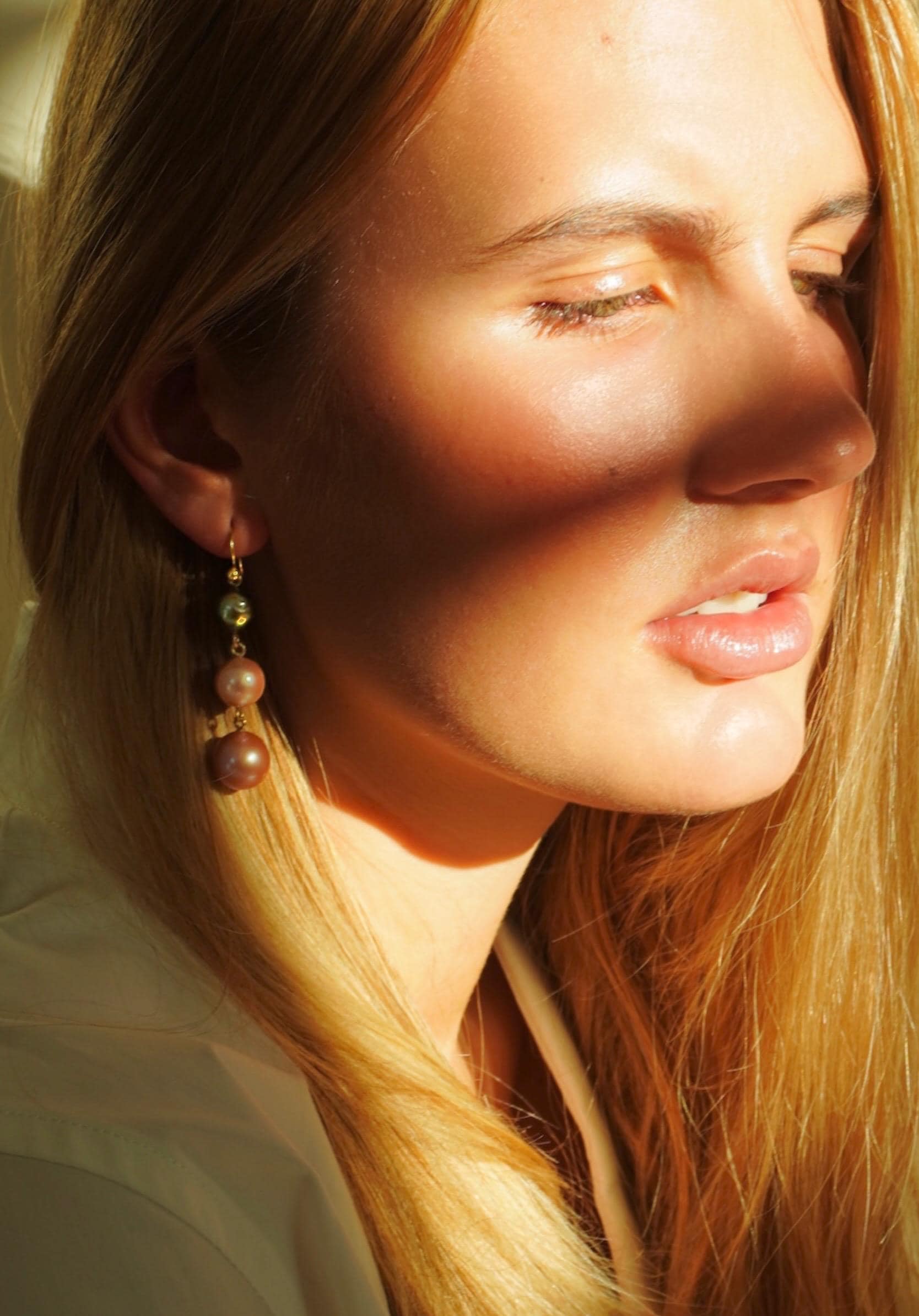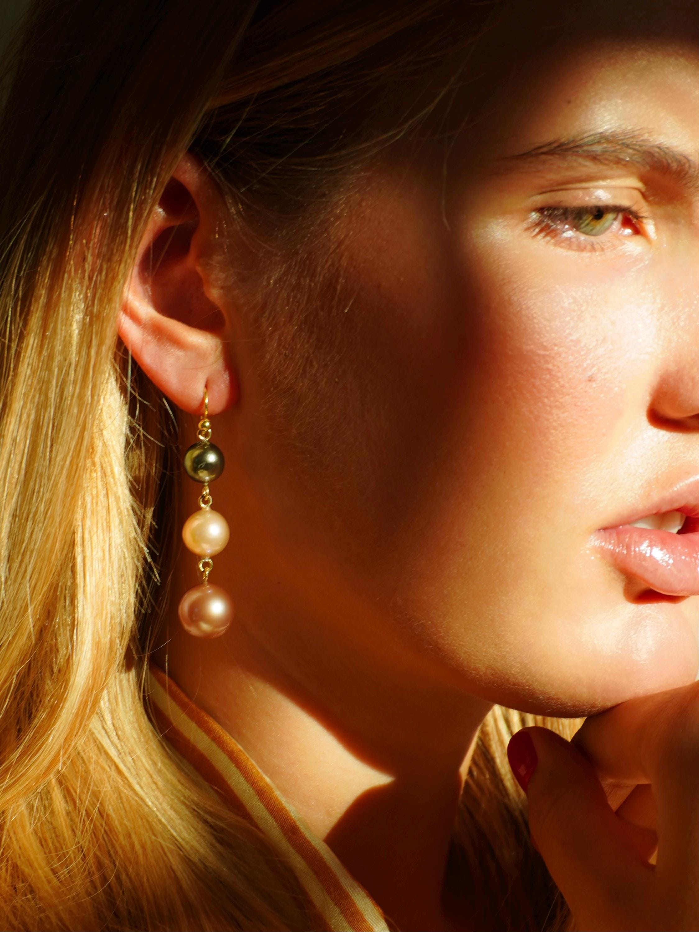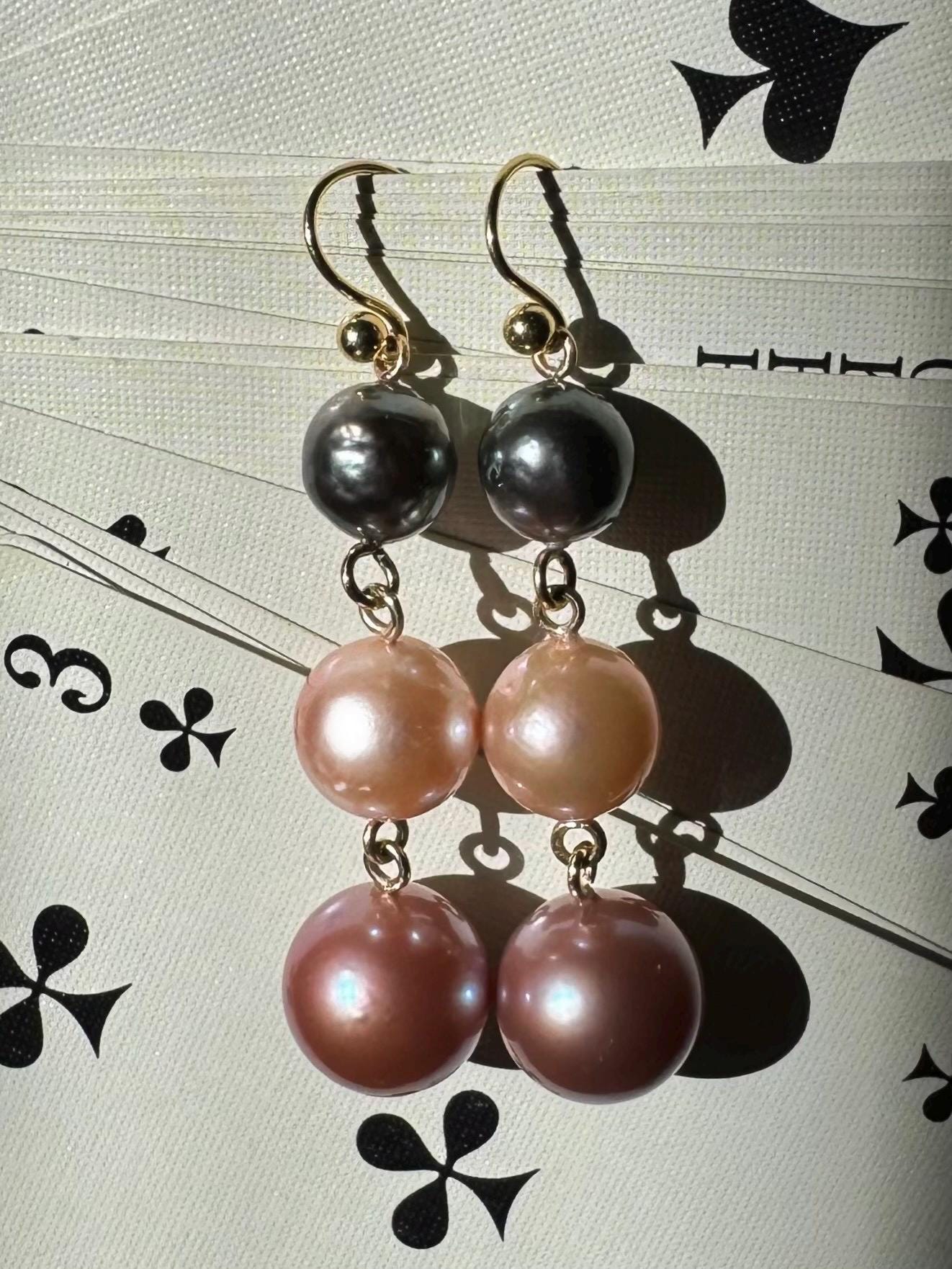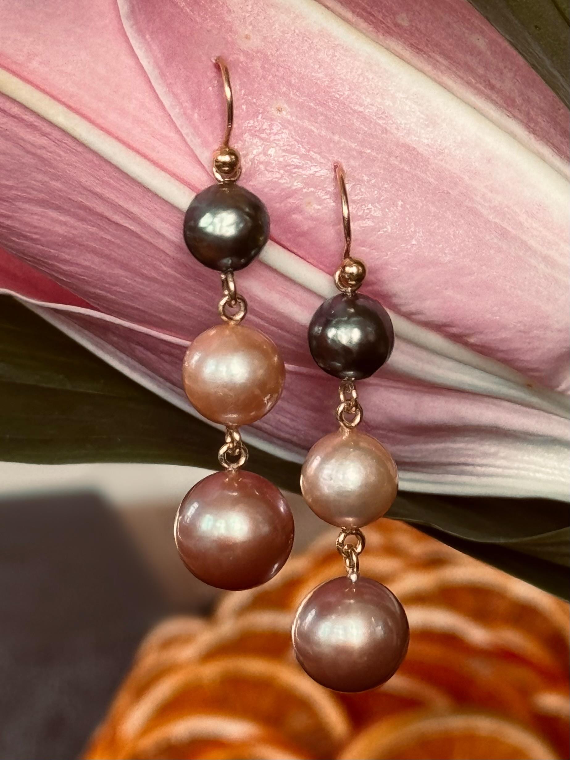 18k Gold with Pink Freshwater and Tahitian Pearls.
