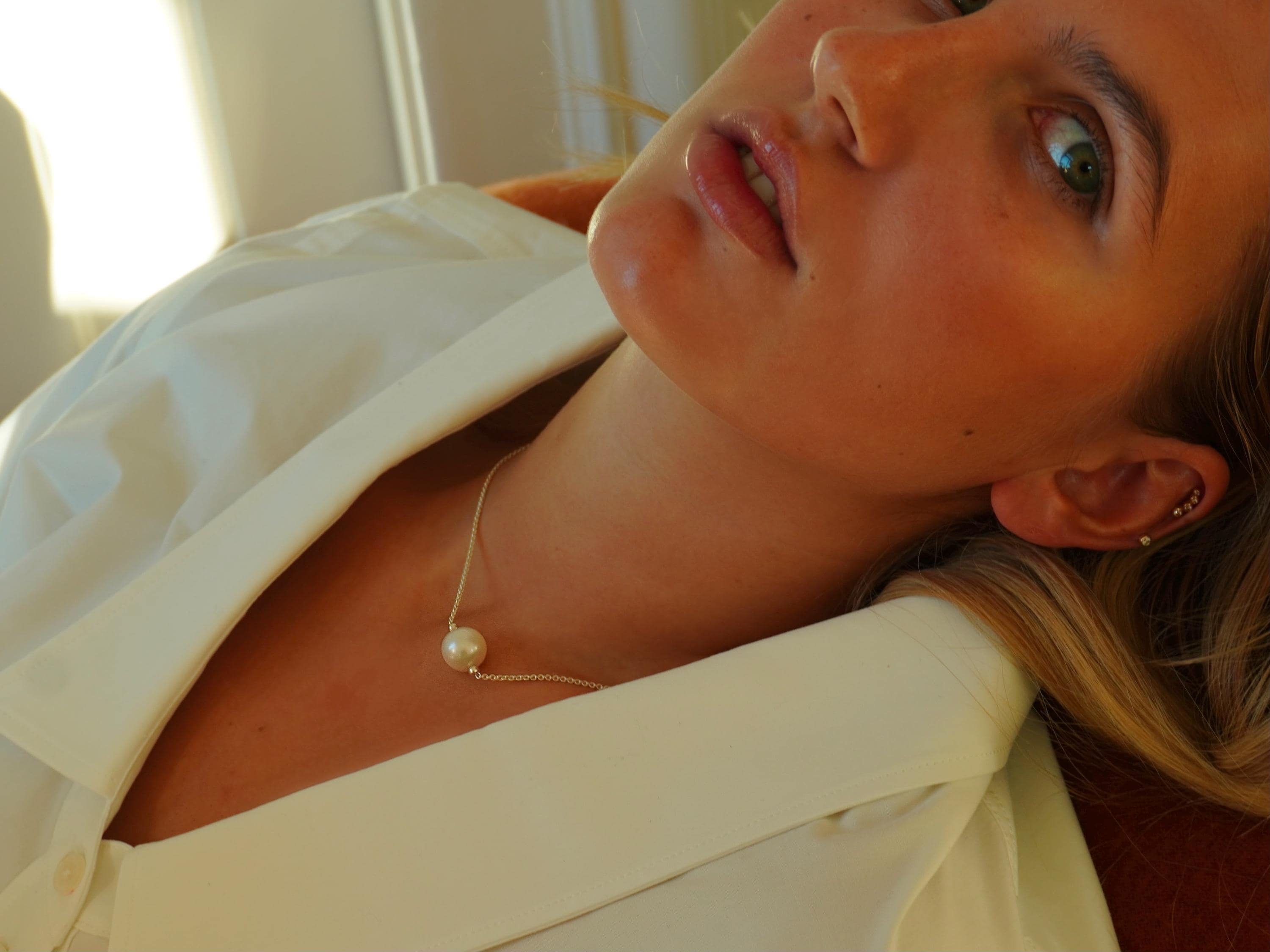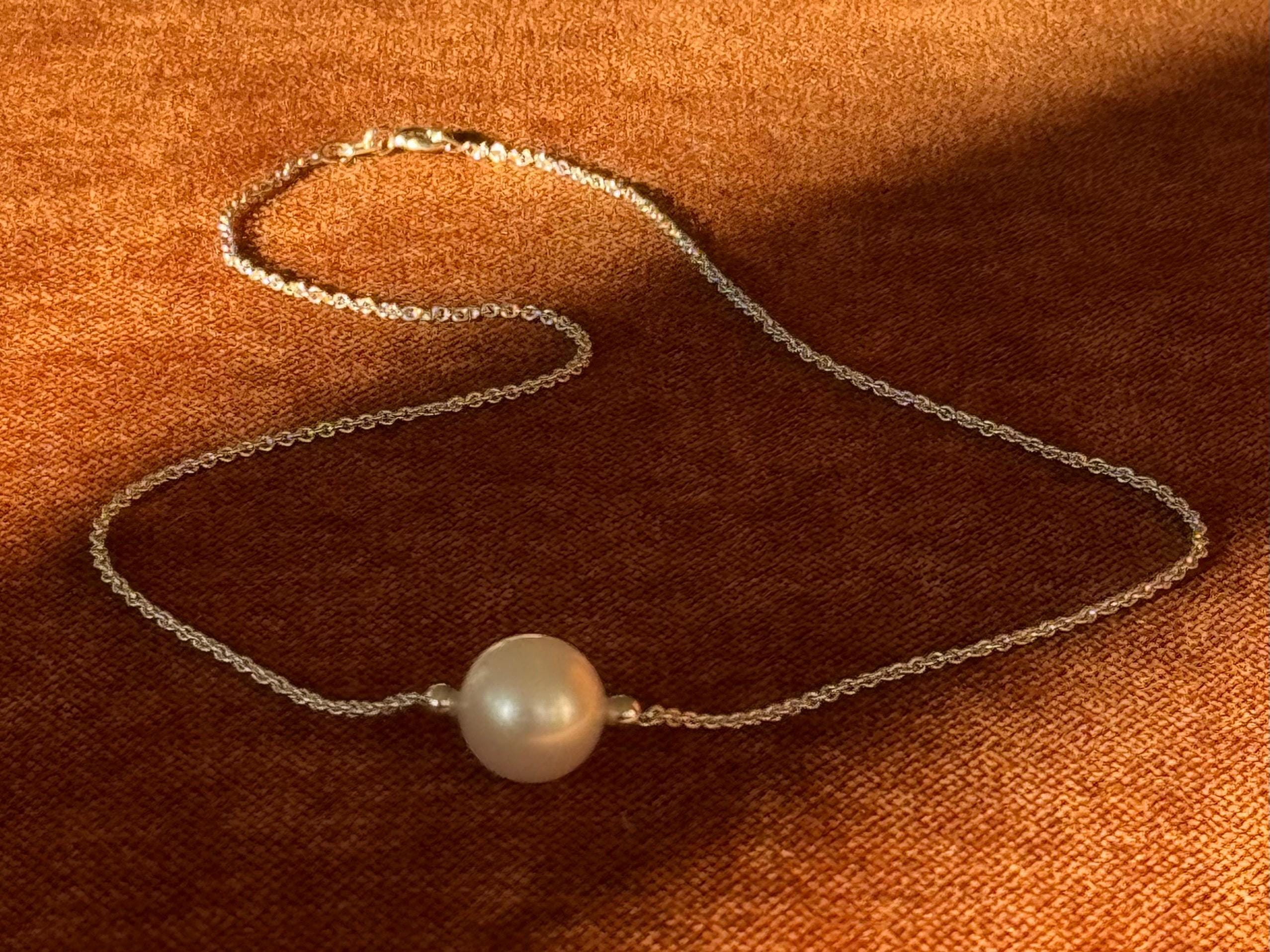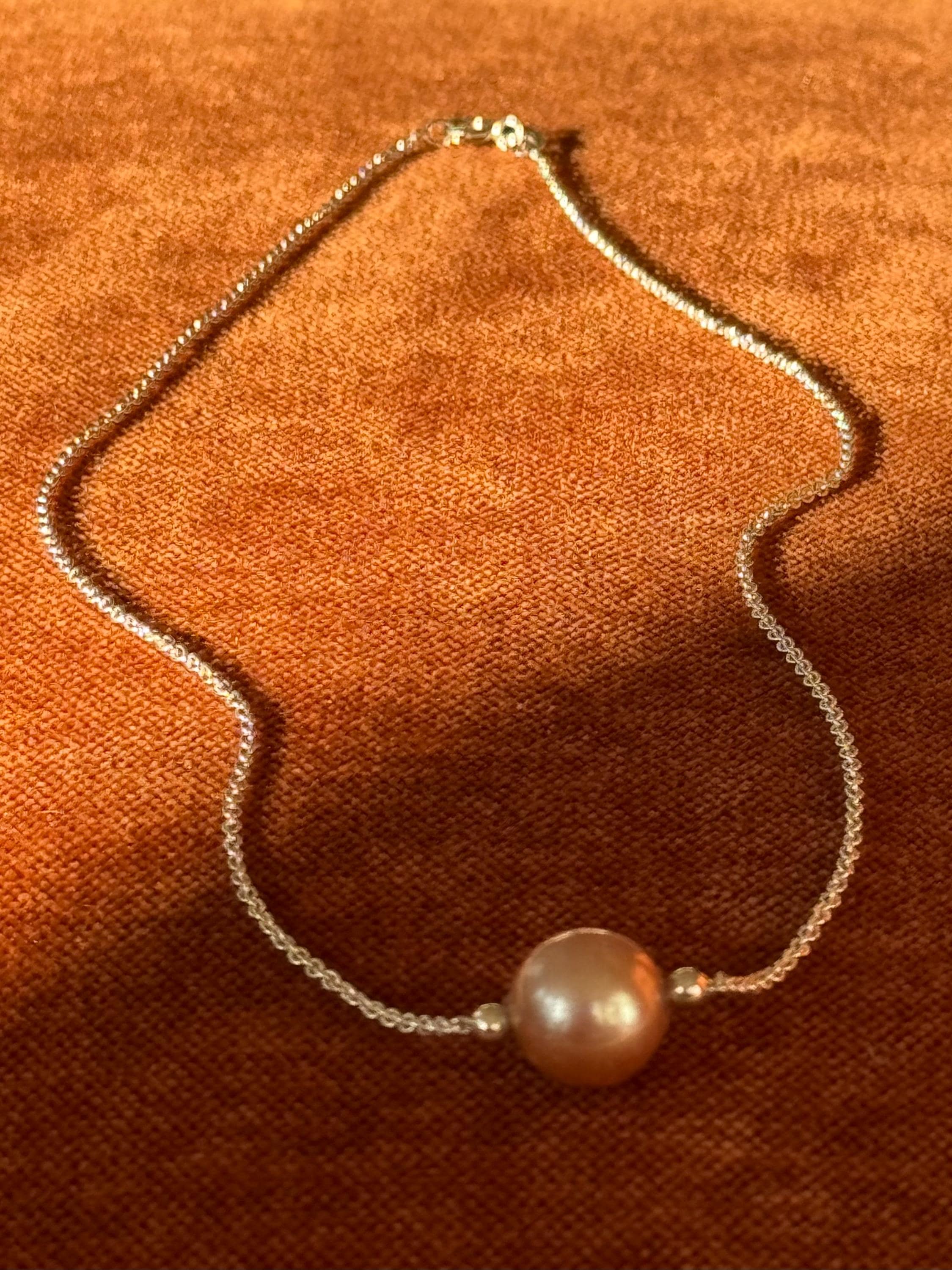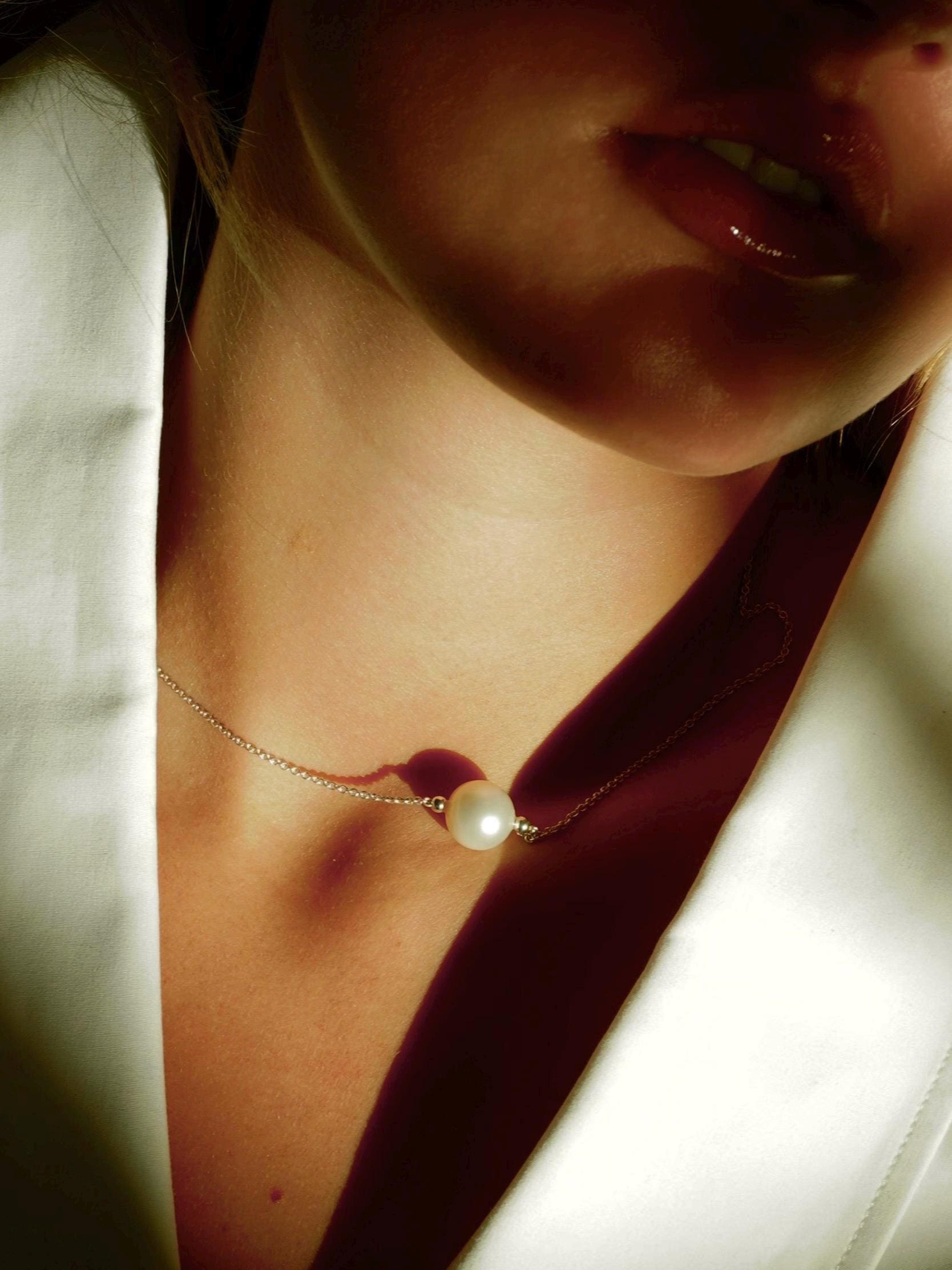 18k gold with a 11-12mm pearl. Available in rose and yellow gold with ming, freshwater or tahitian pearl.