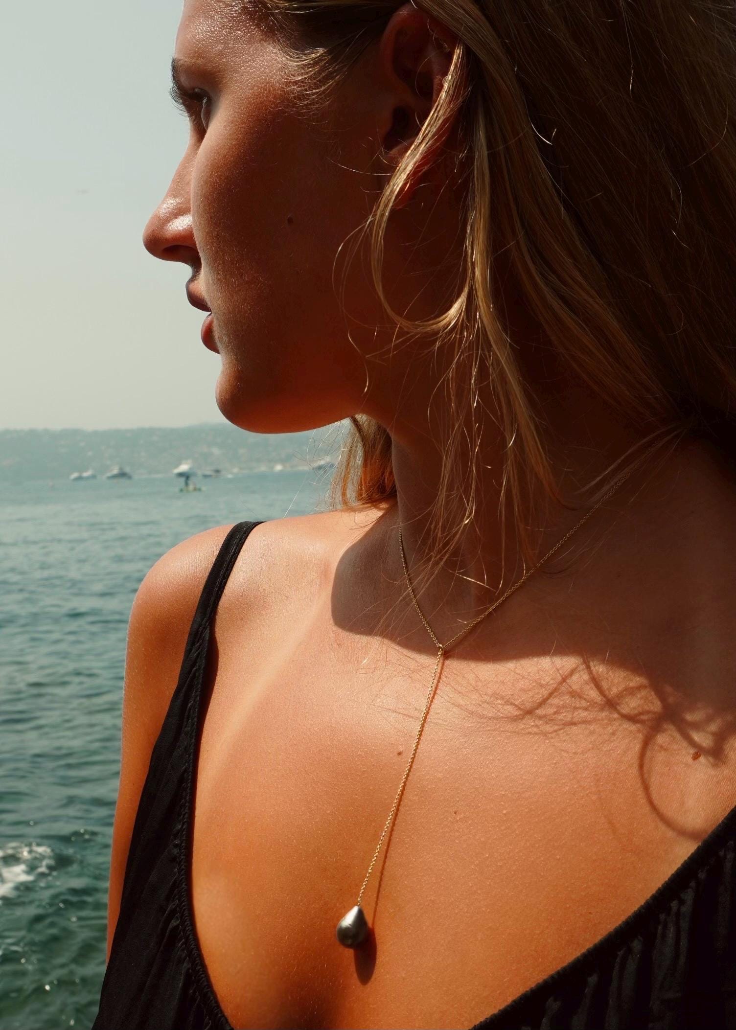 14K gold with a large freshwater pearl drop. Available in rose and yellow gold.