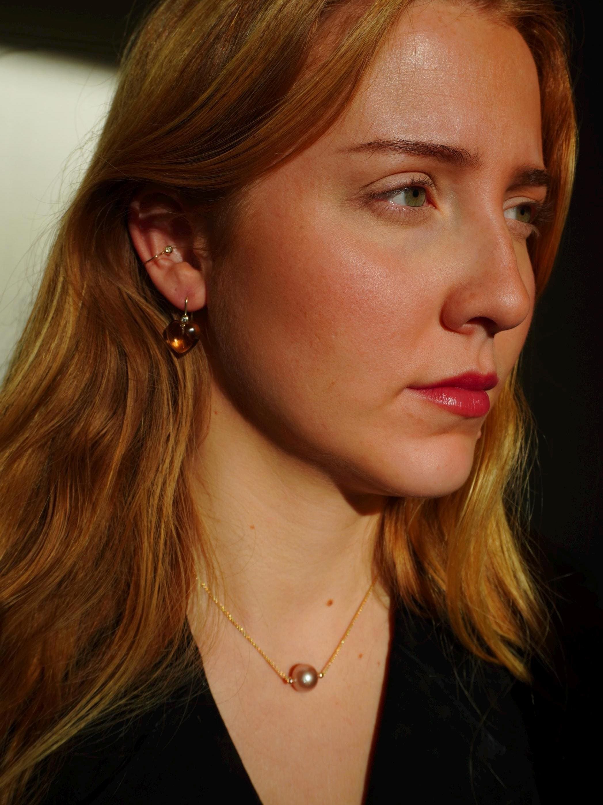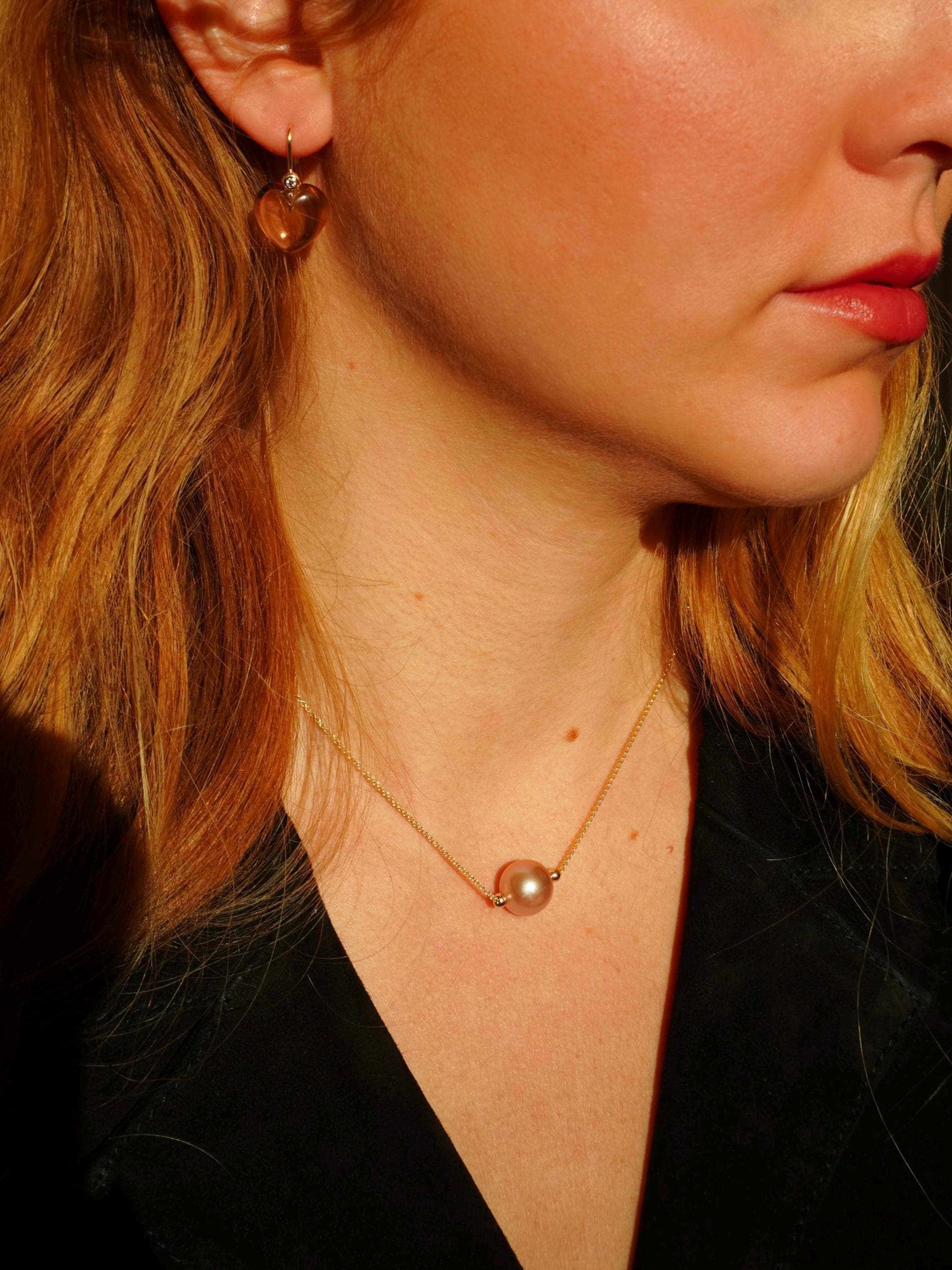 18k gold with a 11-12mm pearl. Available in rose and yellow gold with ming, freshwater or tahitian pearl.